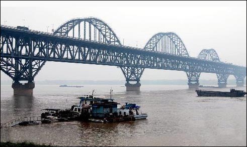 九江长江大桥是一座连通南北交通的公路铁路两用桥,全长7675.6米,是京九铁路的“咽喉”.九江长江大桥于1973年12月动工修建,1993年1月公路桥全部建成,1994年7月铁路桥开通。这座大桥无论是从设计、施工工艺,还是新型建筑材料的使用等方面,都反映了我国迄今最先进的建桥水平。