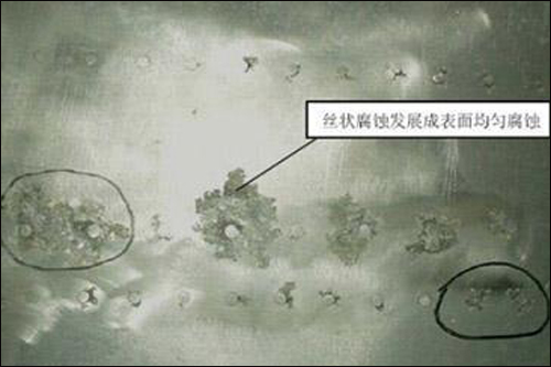 从飞机设计和制造来看,飞机设计师尽量采用重量轻、强度大的高效材料,如高强度铝合金、钛合金、复合材料、超高强度合金钢等材料。其中,高强度铝合金本身由多种金属熔炼而成,不同金属元素之间的存在较高的电位差,如遇到电解质溶液,极易发生电化学腐蚀。不同的金属相接时,造成不同金属之间的电位差和导电通路。而各个部件组装在一起时,缝隙会存水和赃物形成电解质。有 些结构处于高应力状态形成应力腐蚀的根源。
