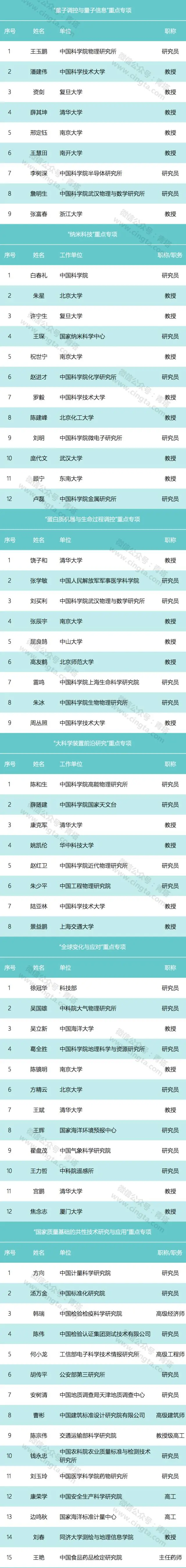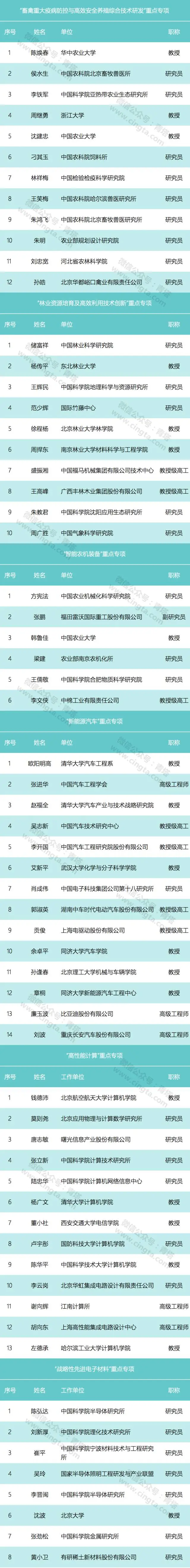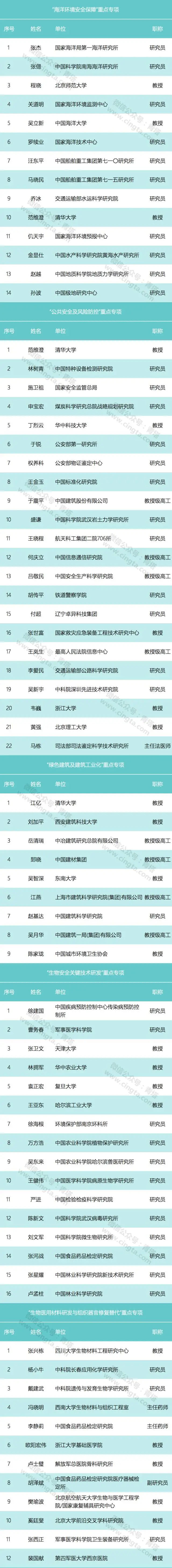 从公布的各重点专项和试点专项的指南编制专家来看,也都是各领域的权威专家,包括各学科领域的两院院士、长江学者、国家杰青等知名科学家。下面一起来看看2018年国家重点研发计划40个重点专项指南和项目的指南编制专家吧: