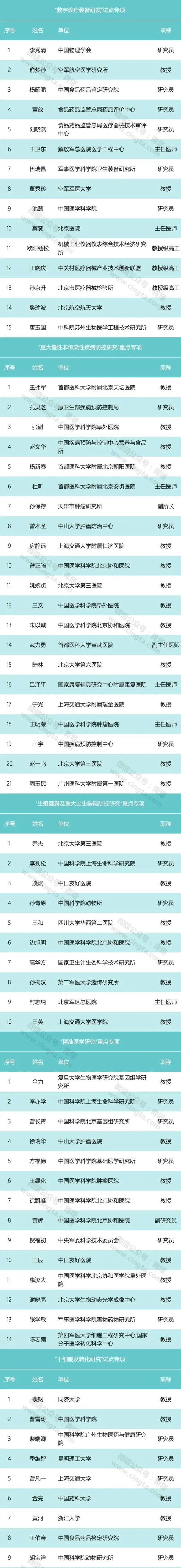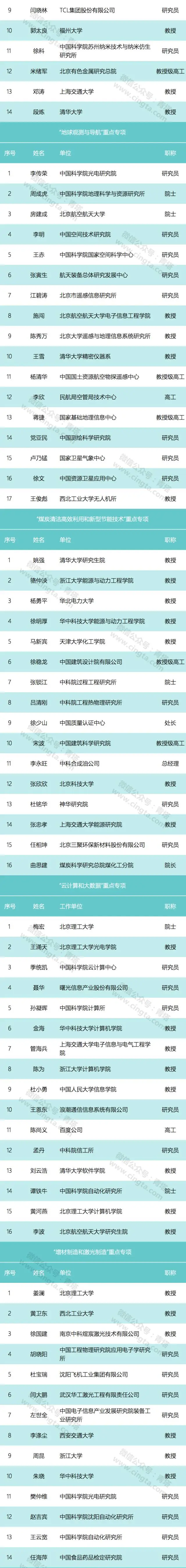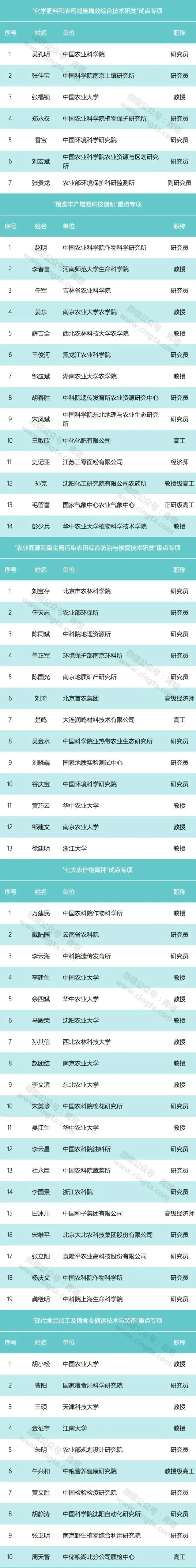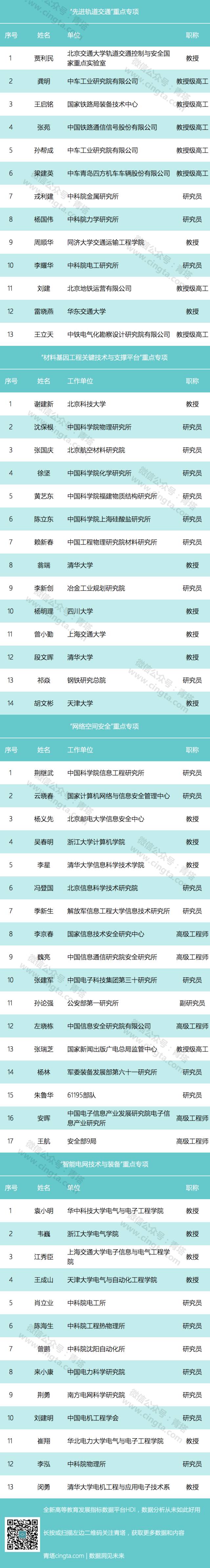 从公布的各重点专项和试点专项的指南编制专家来看,也都是各领域的权威专家,包括各学科领域的两院院士、长江学者、国家杰青等知名科学家。下面一起来看看2018年国家重点研发计划40个重点专项指南和项目的指南编制专家吧: