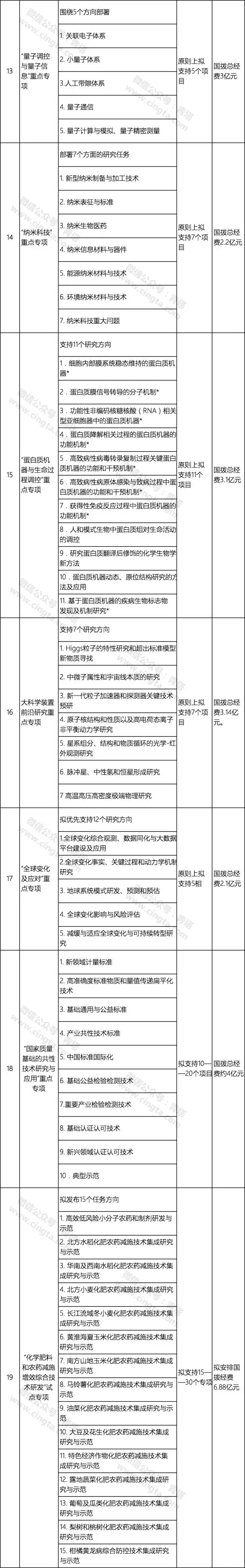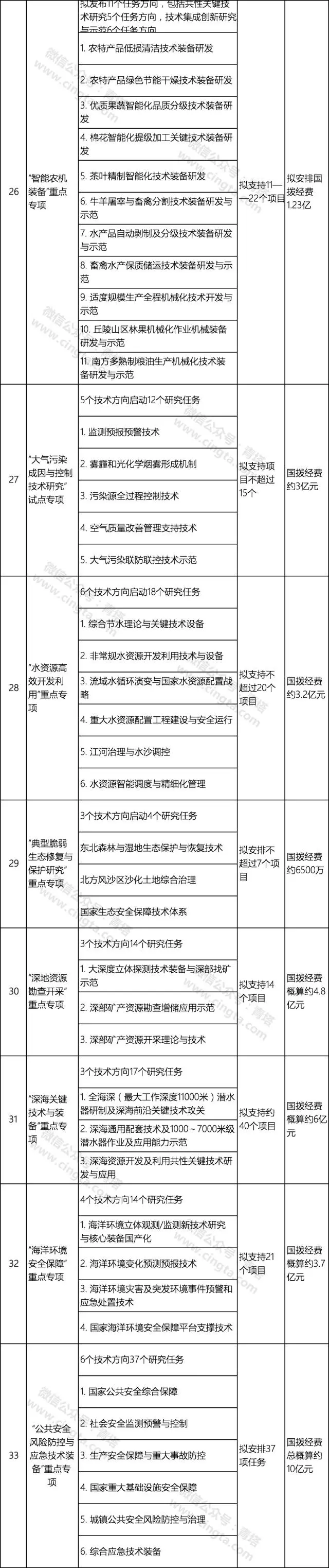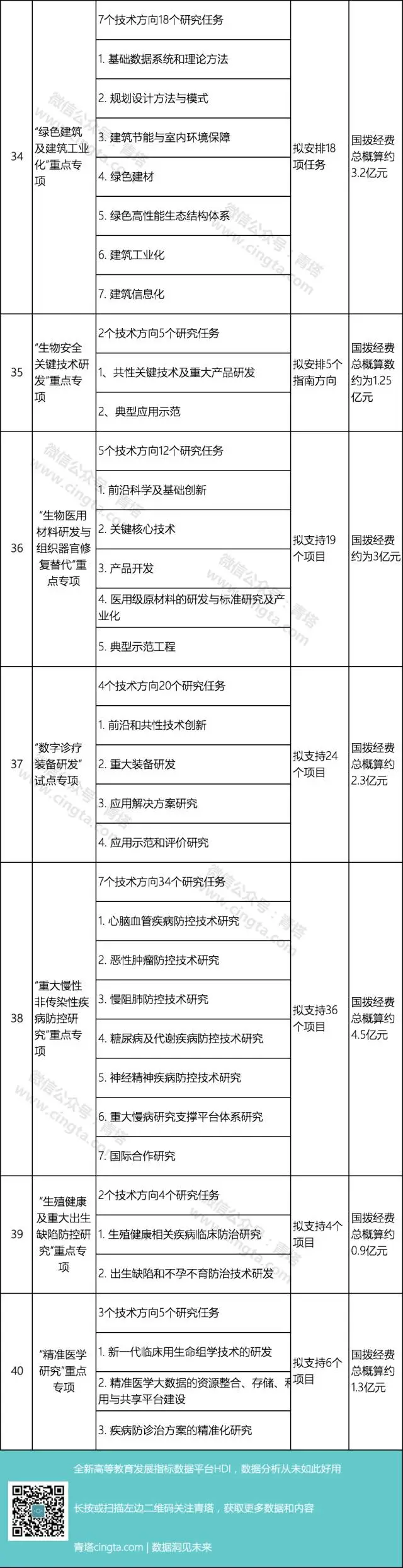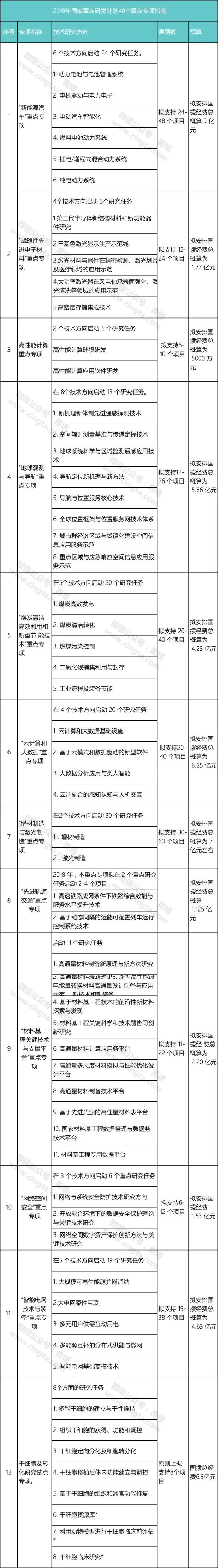 2018年40个国家重点研发计划重点专项的申报指南包括技术研究方向、课题数和预算经费等。