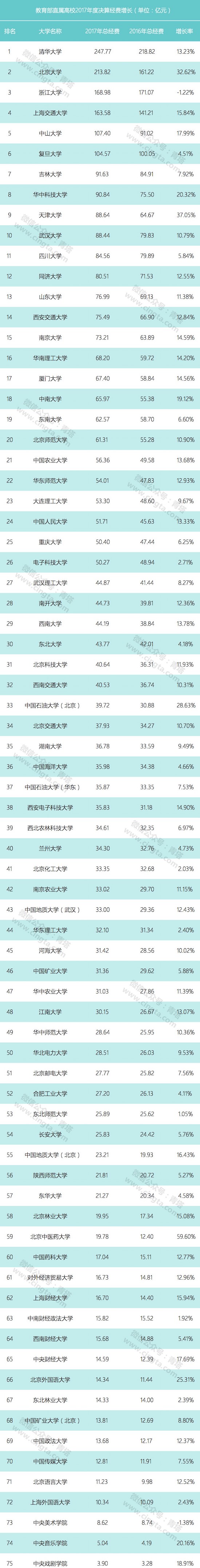 6所高校过百亿!教育部直属高校公布2017年决算数据