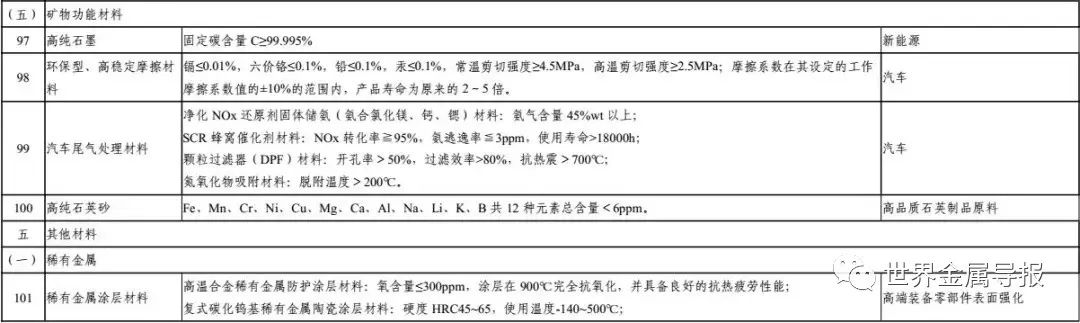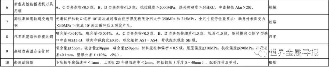 其中,先进钢铁材料包括17种,材料名称、性能要求及应用领域具体如下: