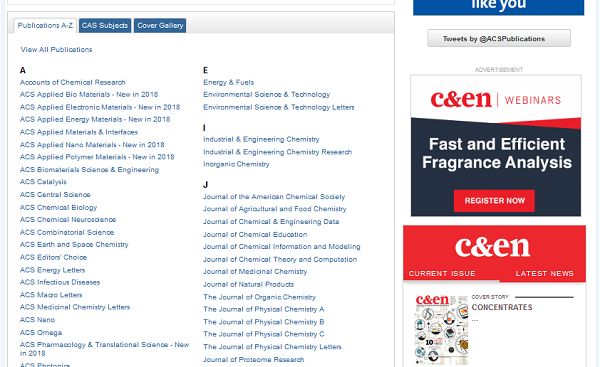 1.ACS (American Chemical Society), 美国化学学会成立于1876年,现已成为世界上最大的科技学会,会员数超过163,000人。ACS所出版的期刊有37种,内容涵盖了24个主要的化学研究领域。ACS全文电子期刊包含每一种期刊的创刊号到最新一期所有全文内容。内容达到36,000期ACS刊物,620,000篇文章,385万页化学文献信息,日期回溯到1879年。