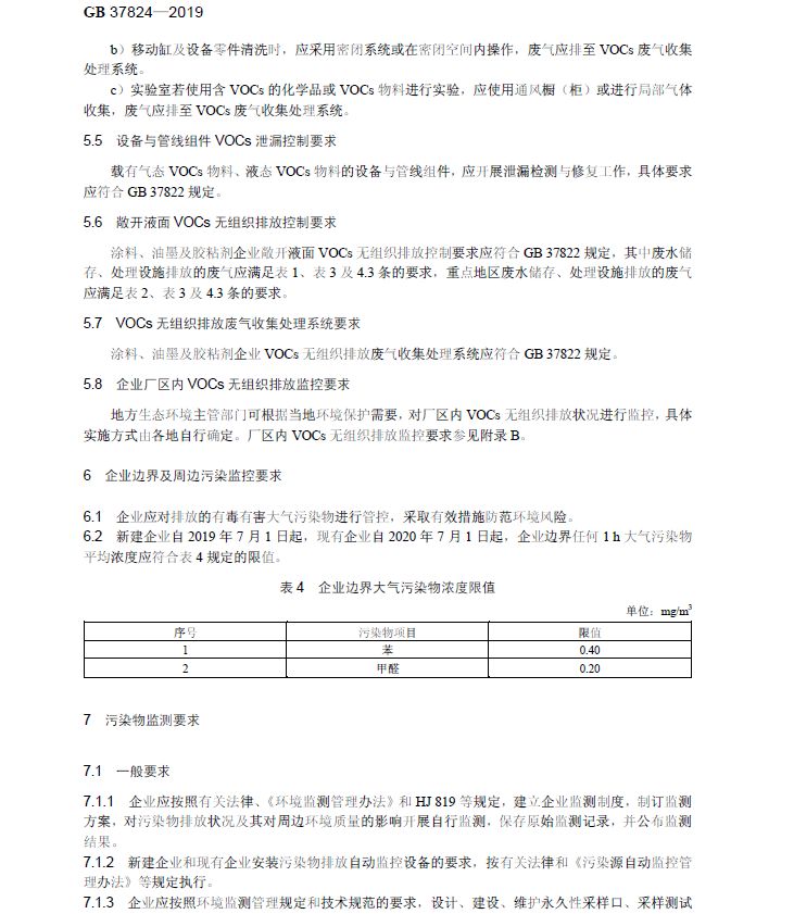 4.新建企业自 2019 年 7 月 1 日起,现有企业自 2020 年 7 月 1 日起,企业边界任何 1 h 大气污染物平均浓度应符合表 4 规定的限值。