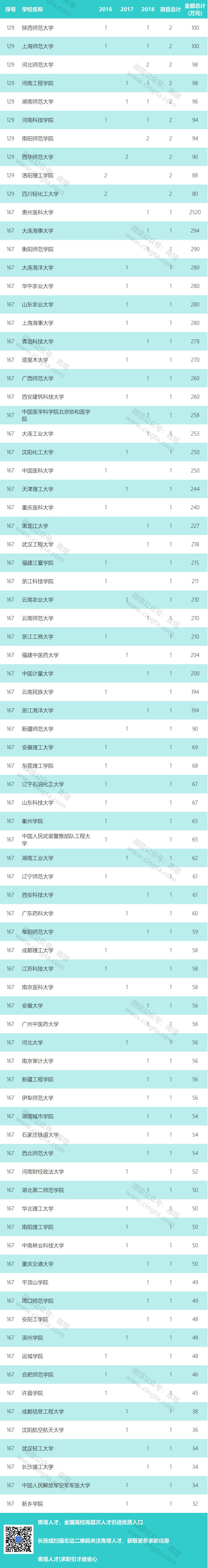 上海交通大学、东北大学、浙江大学、中山大学、河南大学、河南科技大学、大连理工大学、北京理工大学和河南师范大学获批数量均在30项以上,其中,中山大学的资助金额也超过1亿元,仅次于清华大学。同时,河南多所高校表现突出,郑州大学作为一流大学建设高校在获批项目数量上,居国内高校第一位;河南大学在获批项目数量上也表现不俗,而河南科技大学和河南师范大学表现抢眼,在项目数上完全不弱于一众双一流高校。