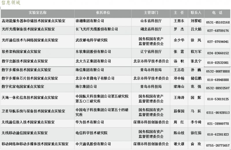企业国家重点实验室通讯录