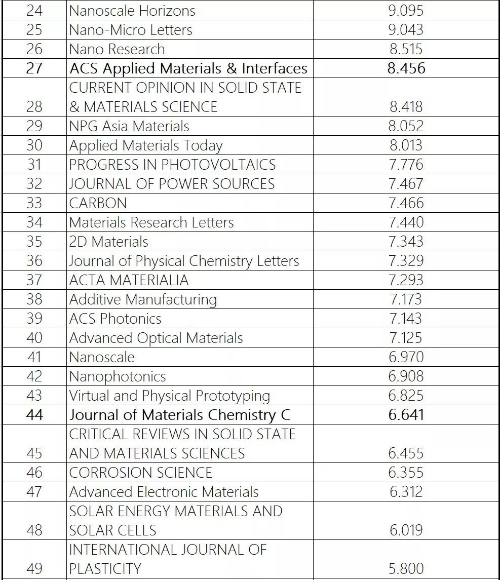 2、一大批原来在工程技术一区的杂志,要变成二区了!比如:Nanoscale Horizons,Nano Research,ACS AMI(一区,估计是凉了),NPG Asia Materials、Carbon,……