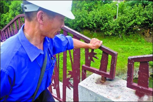 茂新桥栏根部锈蚀腐烂存在较大安全隐患(卢易 摄)