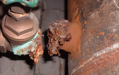 每条管道最薄弱的地方是螺纹处,因为螺纹处切掉了约一半的管壁,螺纹处管壁比其他地方薄很多。管道螺纹处的泄漏往往就是腐蚀问题的征兆,需要进一步调查,却常常被人们忽视,进而造成整个管道的分离和更严重的损害。通常来说,一幢建筑物或工厂经理最为在意的是大型管道干线的情况,而恰恰是螺纹管道易引发巨大损害。管道线路上任意一点都可能发生点腐蚀,而引发腐蚀失效,厚厚的管壁也无法阻挡点腐蚀造成的泄漏。管道泄漏很轻微时,蒸发量超过泄漏量,溶解氧化铁和其他沉淀物积聚在管道螺纹处,这是管道外部表面出现腐蚀问题的征兆;然而,现实中,这样的情况是一种内部腐蚀问题。对于整个管道线路来说,更危险的是均匀的高速率腐蚀反应,因为管壁变薄的速度更为均匀,而且在腐蚀问题最终突显之前毫无征兆。对于所有形式的管道泄漏来说,总是有可能造成整个管道线路的失效。