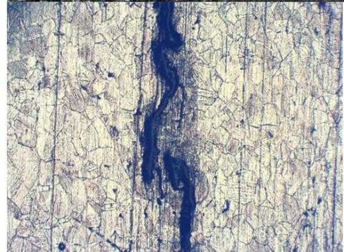 "金属材料接触某些溶液,表面上产生点状局部腐蚀,蚀孔随时间的延续不..."