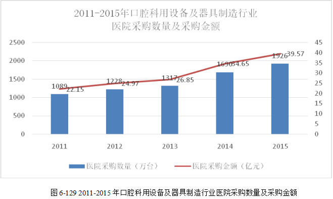 医院是口腔科用设备及器具制造行业产品的主要消耗地,且医院采购数量及采购金额持续增长。