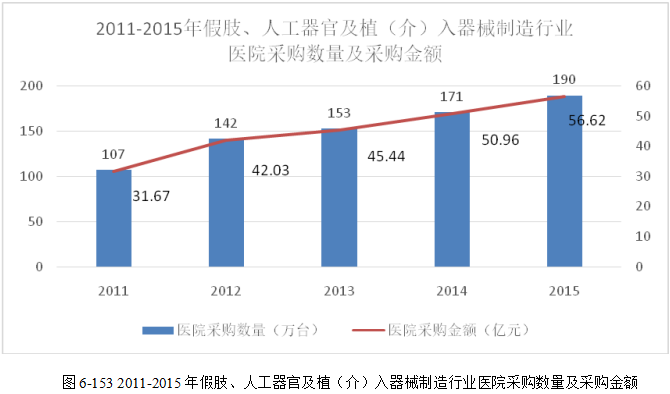 医院是假肢、人工器官及植(介)入器械制造行业产品的主要消耗地,且医院采购数量及采购金额持续增长。