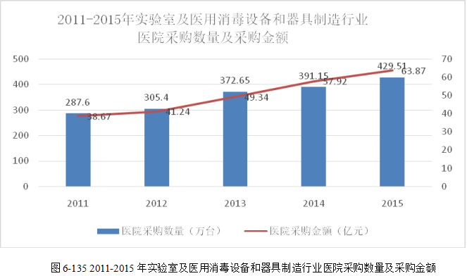 医院是实验室及医用消毒设备和器具制造行业产品的主要消耗地,且医院采购数量及采购金额持续增长。